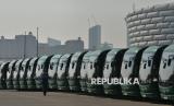 Petugas berjalan diantara shuttle bus listrik di area pelaksanaan Konferensi Perubahan Iklim (COP29) di Baku, Azerbaijan, Ahad (10/11/2024). Konferensi Perubahan Iklim (COP29) digelar 11-22 November 2024. Pada COP29, Indonesia turut hadir dengan fokus membahas peningkatan kontribusi penurunan emisi ditentukan secara nasional (NDC), mengamankan pembiayaan iklim dan membangun ketahanan di area yang rentan terhadap perubahan iklim. (FOTO : Republika/Edwin Dwi Putranto)