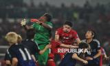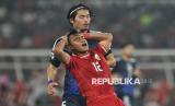 Pemain timnas Indonesia berduel dengan pemain timnas Jepang saat bertanding pada babak ketiga Kualifikasi Piala Dunia 2026 Grup C di Stadion Utama Gelora Bung Karno (SUGBK), Jakarta, Jumat (15/11/2024). Dalam pertandingan tersebut, Indonesia kalah atas Jepang dengan skor 0-4. (FOTO : Republika/Thoudy Badai)