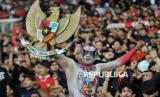 Suporter timnas Indonesia saat menyaksikan pertandingan babak ketiga Kualifikasi Piala Dunia 2026 Grup C melawan Jepang di Stadion Utama Gelora Bung Karno (SUGBK), Jakarta, Jumat (15/11/2024). Dalam pertandingan tersebut, Indonesia kalah atas Jepang dengan skor 0-4. (FOTO : Republika/Thoudy Badai)