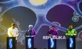 Menteri BUMN Erick Thohir bersama Direktur Utama GoTo Patrick Walujo (tengah) dan Founder dan CEO NVIDIA Jensen Huang menjadi pembicara dalam diskusi saat peluncuran Sahabat-AI, di Jakarta, Kamis (14/11/2024). Jensen Huang berbagi insights menarik mengenai bagaimana AI bisa meningkatkan kemajuan sebuah negara, dan membantu Indonesia mencapai visi seperti yang di cita-citakan Presiden Prabowo Subianto. (FOTO : Dok Republika)