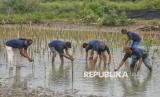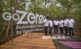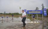 Direktur Utama Telkom Ririek Adriansyah bersiap menanam pohon mangrove dalam kegiatan bertajuk Aksi Restorasi Bumi di Pantai Istambul Glagah Wangi, Demak, Jawa Tengah, Jumat (15/11/2024). PT Telkom Indonesia (Persero) Tbk (Telkom) terus menunjukkan komitmennya dalam mengimplementasikan praktik Keberlanjutan atau ESG di seluruh aspek dan lini bisnis perusahaan. Hal ini diwujudkan melalui kegiatan Aksi Restorasi Bumi dengan melakukan penanaman 10 ribu pohon mangrove di Pantai Istambul Glagah Wangi, Demak, Jawa Tengah. Secara nasional, tahun ini Telkom telah berkontribusi untuk mengurangi dampak lingkungan melalui penanaman lebih dari 90 ribu pohon darat, 50 ribu pohon mangrove, dan 870 terumbu karang. Dengan demikian perusahaan tidak hanya berfokus pada upaya peningkatan kesadaran masyarakat akan kesehatan, namun juga pelestarian lingkungan demi keberlangsungan hidup dan masa depan yang lebih baik. (FOTO : Republika/Prayogi)