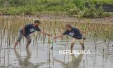 Warga menanam pohon mangrove dalam kegiatan bertajuk Aksi Restorasi Bumi di Pantai Istambul Glagah Wangi, Demak, Jawa Tengah, Jumat (15/11/2024). PT Telkom Indonesia (Persero) Tbk (Telkom) terus menunjukkan komitmennya dalam mengimplementasikan praktik Keberlanjutan atau ESG di seluruh aspek dan lini bisnis perusahaan. Hal ini diwujudkan melalui kegiatan Aksi Restorasi Bumi dengan melakukan penanaman 10 ribu pohon mangrove di Pantai Istambul Glagah Wangi, Demak, Jawa Tengah. Secara nasional, tahun ini Telkom telah berkontribusi untuk mengurangi dampak lingkungan melalui penanaman lebih dari 90 ribu pohon darat, 50 ribu pohon mangrove, dan 870 terumbu karang. Dengan demikian perusahaan tidak hanya berfokus pada upaya peningkatan kesadaran masyarakat akan kesehatan, namun juga pelestarian lingkungan demi keberlangsungan hidup dan masa depan yang lebih baik. (FOTO : Republika/Prayogi)