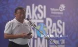 Direktur Utama Telkom Ririek Adriansyah memberikan sambutan dalam kegiatan bertajuk Aksi Restorasi Bumi di Pantai Istambul Glagah Wangi, Demak, Jawa Tengah, Jumat (15/11/2024). PT Telkom Indonesia (Persero) Tbk (Telkom) terus menunjukkan komitmennya dalam mengimplementasikan praktik Keberlanjutan atau ESG di seluruh aspek dan lini bisnis perusahaan. Hal ini diwujudkan melalui kegiatan Aksi Restorasi Bumi dengan melakukan penanaman 10 ribu pohon mangrove di Pantai Istambul Glagah Wangi, Demak, Jawa Tengah. Secara nasional, tahun ini Telkom telah berkontribusi untuk mengurangi dampak lingkungan melalui penanaman lebih dari 90 ribu pohon darat, 50 ribu pohon mangrove, dan 870 terumbu karang. Dengan demikian perusahaan tidak hanya berfokus pada upaya peningkatan kesadaran masyarakat akan kesehatan, namun juga pelestarian lingkungan demi keberlangsungan hidup dan masa depan yang lebih baik. (FOTO : Republika/Prayogi)