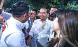 REPUBLIKA.CO.ID, JAKARTA Presiden Indonesia ke-7 Joko Widodo berjabat tangan dengan Calon Gubernur DKI Jakarta nomor urut 1 Ridwan Kamil (kiri) pada acara dialog bersama di Jakarta, Senin (18/11/2024).