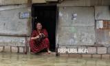 Warga beraktivitas saat banjir rob di kawasan Muara Angke, Jakarta Utara, Selasa (19/11/2024). Banjir setinggi sekitar 30-60 centimeter tersebut terjadi akibat pasang air laut yang melanda beberapa kawasan di pesisir Jakarta Utara. Warga menuturkan banjir tersebut menggenangi pemukiman kawasan pesisir sudah memasuki hari kelima. Sementara menurut BPBD DKI Jakarta fenomena pasang maksimum air laut disebabkan oleh fase bulan baru yang berpotensi banjir rob hingga 21 November mendatang. (FOTO : Republika/Thoudy Badai)