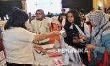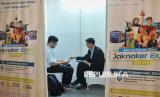 Para pencari kerja melakukan wawancara di salah satu stan perusahaan di acara Jaknaker Expo 2024 di Balai Sudirman, Tebet, Jakarta, Kamis (21/11/2024). Kementerian Ketenagakerjaan bekerjasama dengan Pemerintah Provinsi DKI Jakarta dan Badan Usaha Milik Daerah (BUMD) menggelar Jaknaker Expo 2024 dengan mengusung tema Peluang Karir Tanpa Batas untuk Warga Jakarta yang diselenggarakan dari 21-22 November mendatang dan diikuti oleh sekitar 40 perusahaan. Dalam bursa kerja kali ini, Pemerintah Provinsi DKI Jakarta menargetkan 35.000 lowongan pekerjaan tersedia, sehingga dapat menyerap sebanyak 20-25 persen tenaga kerja. Sementara, Kementerian Ketenagakerjaan berencana akan membuka bursa kerja setiap minggu untuk menekan angka pengangguran di Indonesia. (FOTO : Republika/Thoudy Badai)