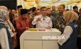Menteri Ketenagakerjaan Yassierli (tengah) meninjau salah satu stan perusahaan di acara Jaknaker Expo 2024 di Balai Sudirman, Tebet, Jakarta, Kamis (21/11/2024). Kementerian Ketenagakerjaan bekerjasama dengan Pemerintah Provinsi DKI Jakarta dan Badan Usaha Milik Daerah (BUMD) menggelar Jaknaker Expo 2024 dengan mengusung tema Peluang Karir Tanpa Batas untuk Warga Jakarta yang diselenggarakan dari 21-22 November mendatang dan diikuti oleh sekitar 40 perusahaan. Dalam bursa kerja kali ini, Pemerintah Provinsi DKI Jakarta menargetkan 35.000 lowongan pekerjaan tersedia, sehingga dapat menyerap sebanyak 20-25 persen tenaga kerja. Sementara, Kementerian Ketenagakerjaan berencana akan membuka bursa kerja setiap minggu untuk menekan angka pengangguran di Indonesia. (FOTO : Republika/Thoudy Badai)