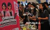 Para pencari kerja mencari lowongan pekerjaan di salah satu stan perusahaan di acara Jaknaker Expo 2024 di Balai Sudirman, Tebet, Jakarta, Kamis (21/11/2024). Kementerian Ketenagakerjaan bekerjasama dengan Pemerintah Provinsi DKI Jakarta dan Badan Usaha Milik Daerah (BUMD) menggelar Jaknaker Expo 2024 dengan mengusung tema Peluang Karir Tanpa Batas untuk Warga Jakarta yang diselenggarakan dari 21-22 November mendatang dan diikuti oleh sekitar 40 perusahaan. Dalam bursa kerja kali ini, Pemerintah Provinsi DKI Jakarta menargetkan 35.000 lowongan pekerjaan tersedia, sehingga dapat menyerap sebanyak 20-25 persen tenaga kerja. Sementara, Kementerian Ketenagakerjaan berencana akan membuka bursa kerja setiap minggu untuk menekan angka pengangguran di Indonesia. (FOTO : Republika/Thoudy Badai)