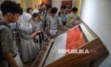 Siswa SMPN 81 Jakarta mengamati barang-barang koleksi milik tokoh proklamasi yang dipamerkan dalam pameran Memori Antik Tokoh Proklamasi di Museum Perumusan Naskah Proklamasi, Jakarta, Jumat (22/11/2024). Pameran Memori Antik tersebut diselenggarakan untuk menghormati dan mengenang peran penting tokoh-tokoh yang terlibat dalam proklamasi dan menampilkan/menyajikan koleksi berupa benda-benda pribadi 13 tokoh proklamasi. Pameran ini mengajak dan mengingatkan jasa-jasa para tokoh dalam perjuangan kemerdekaan bangsa sekaligus melihat lebih dekat sisi pribadi dari para tokoh sejarah tersebut. Adapun koleksi yang dipamerkan tidak berkaitan langsung dengan peristiwa proklamasi, namun melalui benda-benda pribadi yang dipamerkan, masyarakat dapat menyelami kehidupan, memahami keseharian, serta merasakan semangat perjuangan para tokoh. (FOTO : Republika/Prayogi)