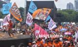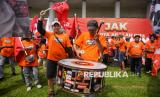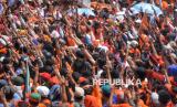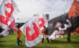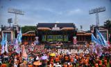 Para pendukung menghadiri kampanye akbar calon gubernur dan wakil gubernur Jakarta nomor urut 3 Pramono Anung-Rano Karno di Stadion Madya, Kompleks Gelora Bung Karno (GBK) Jakarta, Sabtu (23/11/2024). Kampanye akbar Pramono-Rano yang bertemakan Hajatan Jakarta Menyala tersebut sekaligus menjadi acara kampanye terakhir bagi pasangan nomor urut 03 ini. Setelah ini, tahapan Pilkada 2024 akan dilanjutkan dengan masa tenang pada 24 hingga 26 November, dan dilanjutkan dengan pencoblosan pada 27 November 2024.Kampanye akabar Hajatan Jakarta Menyala ini dihadiri oleh ribuan pendukung yang siap memenangi pasangan Pramono - Rano dalam Pilgub Jakarta 2024. (FOTO : Republika/Prayogi)