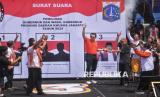 Pasalon Gubernur dan Wakil Gubernur Jakarta nomor urut 3 Pramono Anung-Rano Karno memberikan sambutan saat kampanye akbar di Stadion Madya, Kompleks Gelora Bung Karno (GBK) Jakarta, Sabtu (23/11/2024). Kampanye akbar Pramono-Rano yang bertemakan Hajatan Jakarta Menyala tersebut sekaligus menjadi acara kampanye terakhir bagi pasangan nomor urut 03 ini. Setelah ini, tahapan Pilkada 2024 akan dilanjutkan dengan masa tenang pada 24 hingga 26 November, dan dilanjutkan dengan pencoblosan pada 27 November 2024.Kampanye akabar Hajatan Jakarta Menyala ini dihadiri oleh ribuan pendukung yang siap memenangi pasangan Pramono - Rano dalam Pilgub Jakarta 2024. (FOTO : Republika/Prayogi)