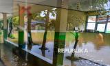 Penjaga sekolah memindahkan kursi di dalam kelas yang terdampak banjir di SMPN 1 Bojongsoang, Kabupaten Bandung, Jawa Barat, Ahad (24/11/2024). Penjaga sekolah mengungkapkan sejak Jumat (22/11/2024) sekolah tersebut terendam banjir akibat intensitas hujan yang tinggi dan luapan Sungai Citarum dan fasilitas sekolah tidak dapat digunakan karena debit air yang masih tinggi. (FOTO : ANTARA FOTO/Raisan Al Farisi)