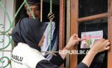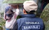 REPUBLIKA.CO.ID, TEMANGGUNG -- Anggota Bawaslu menempelkan stiker saat sosialisasi tolak politik uang Pilkada 2024 di Brojolan, Temanggung, Jawa Tengah, Senin (25/11/2024).