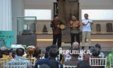 Menteri Kebudayaan Fadli Zon (tengah) dan Wakil Menteri Kebudayaan Giring Ganesha (kanan) saat membuka pameran Pesona Keris Nusantara di Museum Nasional Indonesia, Jakarta, Senin (25/11/2024). Kementerian Kebudayaan menyelenggarakan pameran Pesona Keris Nusantara dengan memamerkan sebanyak sekitar 200 koleksi keris dari berbagai daerah di Indonesia dalam rangka merayakan momen penetapan keris Indonesia menjadi warisan budaya tak benda dunia oleh UNESCO pada 25 November 2024. Pameran tersebut belangsung selama dua bulan hingga bulan Januari mendatang. (FOTO : Republika/Thoudy Badai)