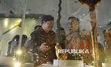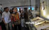 Menteri Kebudayaan Fadli Zon (kanan) dan wakil Menteri Kebudayaan Giring Ganesha (kiri) mengamati koleksi keris yang dipamerkan dalam pameran Pesona Keris Nusantara di Museum Nasional Indonesia, Jakarta, Senin (25/11/2024). Kementerian Kebudayaan menyelenggarakan pameran Pesona Keris Nusantara dengan memamerkan sebanyak sekitar 200 koleksi keris dari berbagai daerah di Indonesia dalam rangka merayakan momen penetapan keris Indonesia menjadi warisan budaya tak benda dunia oleh UNESCO pada 25 November 2024. Pameran tersebut belangsung selama dua bulan hingga bulan Januari mendatang. (FOTO : Republika/Thoudy Badai)