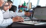 REPUBLIKA.CO.ID, SURABAYA -- Anggota KPU Jawa Timur memantau informasi Pilkada 2024 melalui Data Center Election di Surabaya, Jawa Timur, Senin (25/11/2024).