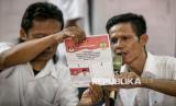REPUBLIKA.CO.ID, SUKOHARJO -- Petugas KPPS menunjukkan surat suara pemilihan Bupati dan Wakil Bupati Sukoharjo saat proses penghitungan suara Pilkada 2024 di TPS 02 Mendungan, Kartasura, Sukoharjo, Jawa Tengah, Rabu (27/11/2024).