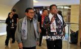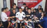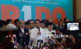 Pasangan Calon Gubernur dan Wakil Gubernur DKI Jakarta nomor urut 3 Pramono Anung dan Rano Karno tiba di media center untuk menyampaikan konferensi pers terkait perhitungan cepat Pilkada 2024 di Jakarta, Rabu (27/11/2024). Dalam kesempatannya, paslon Pramono-Rano mengucapkan terimakasih kepada warga Jakarta atas dukungannya, dan berharap hasil quick count, exit poll dan real count dari KPU DKI Jakarta berbuah kemenangan baginya. Namun, berdasarkan quick count atau perhitungaan cepat dari Litbang Kompas pukul 16.07 dengan jumlah suara masuk sebesar 87,50 persen, pasangan Calon Gubernur dan Wakil Gubenur DKI Jakarta nomor urut tiga Pramono Anung-Rano Karno unggul 49,40 persen, paslon nomor urut satu Ridwan Kamil-Suswono 40,26 persen dan paslon nomor urut dua Dharma Pongrekun-Kun Wardana 10,34 persen (FOTO : Republika/Thoudy Badai)