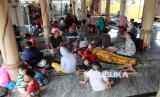 REPUBLIKA.CO.ID, MEDAN -- Sejumlah warga korban banjir mengungsi di dalam masjid di Medan Labuhan, Medan, Sumatera Utara, Kamis (28/11/2024).