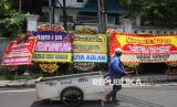 Karangan-karangan bunga tersebut memenuhi kawasan sekitar posko pemenangan Pram-Rano usai pasangan cagub-cawagub yang diusung PDI Perjuangan itu unggul dalam perolehan suara Pilkada 2024 DKI Jakarta versi hitung cepat sejumlah lembaga survei dengan angka di atas 50 persen.