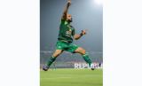 Pesepak bola Persebaya Surabaya Mohammed Rashid berselebrasi usai mencetak gol ke gawang Madura United FC pada pertandingan BRI Liga 1 di Stadion Gelora Bangkalan, Bangkalan, Jawa Timur, Senin (2/12/2024). Persebaya Surabaya mengalahkan Madura United FC dengan skor 2-1. Dua gol Persebaya dicetak Mohammed Rashid menit 44 dan 84. Satu gol Madura United dicetak Maxuel de Cassio da Silva di menit ke-69. (FOTO : ANTARA FOTO/Rizal Hanafi)