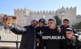 REPUBLIKA.CO.ID, YERUSALEM -- Anak Palestina Ayham al-Salaymeh (14), berjalan bersama ayahnya sebelum menyerahkan diri untuk menjalani hukuman di penjara Israel, di Yerusalem Timur, Ahad (1/12/2024).