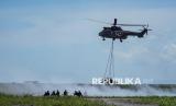 REPUBLIKA.CO.ID, LUMAJANG -- Helikopter NAS-332 Super Puma mengangkut kendaraan taktis P6-ATAV saat pelaksanaan Fire Power Demo dalam Latihan Angkasa Yudha 2024 di Lapangan Air Weapon Range (AWR) Pandanwangi, Lumajang, Jawa Timur, Selasa (3/12/2024).