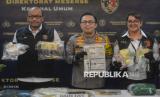 REPUBLIKA.CO.ID, JAKARTA -- Para tersangka dihadirkan saat rilis 2 kasus kejahatan yang berbeda di Mapolda Metro Jaya, Jakarta, Jumat (6/12/2024).