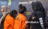 Para tersangka dihadirkan saat rilis 2 kasus kejahatan yang berbeda di Mapolda Metro Jaya, Jakarta, Jumat (6/12/2024). Sub Direktorat Remaja, Anak, dan Wanita (Subdit Renakta) Ditreskrimum Polda Metro Jaya berhasil mengungkapkan dua kasus kejahatan berbeda yaitu kasus klinik kecantikan yang tidak memenuhi standar keamanan serta kasus pengungkapan Tindak Pidana Perdagangan Orang (TPPO) berupa mail order bride atau pengantin pesanan. Pihak kepolisian juga berhasil mengamankan beberapa barang bukti serta total 11 orang tersangka dari 2 kasus berbeda tersebut. (FOTO : Republika/Prayogi)