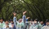 Sejumlah peserta penanaman mangrove bersama BPKH melepasliarkan burung di Taman Wisata Alam Mangrove Angke Kapuk, Jakarta, Sabtu (7/12/2024). Badan Pengelola Keuangan Haji (BPKH) menanam 1.000 pohon mangrove dan melepasliarkan 60 burung jenis Dederuk Jawa, Perenjak Jawa, dan Kutilang untuk menjaga kelestarian alam di wilayah pesisir. (FOTO : ANTARA FOTO/Muhammad Ramdan)