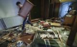 Sejumlah orang menjarah barang-barang di kediaman pribadi Presiden Suriah Bashar Assad di distrik Malkeh, Damaskus, Suriah, Ahad (8/12/2024). Kekuasaan Partai Baath di Suriah tumbang pada Ahad (8/12/2024). Hal itu ditandai ibu kota Damaskus lepas dari kendali rezim Presiden Bashar al-Assad. Runtuhnya kekuatan pasukan Assad di ibu kota mengakhiri 61 tahun pemerintahan Partai Baath yang penuh kekerasan dan 53 tahun kekuasaan keluarga Assad. (FOTO : AP Photo/Hussein Malla)