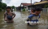 REPUBLIKA.CO.ID, JOMBANG -- Warga melintasi jalan yang terendam banjir di Dusun Beluk, Desa Jombok, Kecamatan Kesamben, Kabupaten Jombang, Jawa Timur, Senin (9/12/2024).