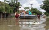 Petugas mengevakuasi warga dengan perahu karet menuju tempat pengungsian di Dusun Beluk, Desa Jombok, Kecamatan Kesamben, Kabupaten Jombang, Jawa Timur, Selasa (10/12/2024). Curah hujan yang tinggi menyebakan sungai Avour Watudakon dan Rejoagung 2 Peterongan meluap hingga menggenangi delapan desa di lima kecamatan wilayah Kabupaten Jombang, dengan ketinggian air bervariasi mulai 30 cm hingga 90 cm.  (FOTO : ANTARA FOTO/Syaiful Arif)