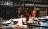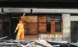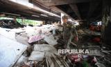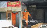 Para petugas melakukan membersihkan lapak dengan merobohkannya terlebih dahulu. Kemudian sisa-sisa lapak dikumpulkan untuk kemudian diangkut menuju tempat pembuangan.