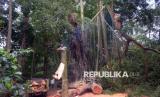 REPUBLIKA.CO.ID, GIANYAR -- Sejumlah warga bergotong-royong membersihkan batang pohon pascapohon tumbang yang menimpa sejumlah wisatawan di area objek wisata Monkey Forest, Ubud, Gianyar, Bali, Rabu (11/12/2024).