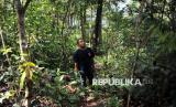 Petani gaharu mengamati lahan pohon gaharu di Desa Tanjung Belit, Kecamatan Kampar Kiri Hulu, Kabupaten Kampar, Riau, Rabu (11/12/2024). Pohon Gaharu (Aquilaria malaccensis) merupakan salah satu tanaman yang dimanfaatkan warga setempat untuk dibudidayakan karena memiliki nilai ekonomi yang tinggi. Kayu gaharu tersebut dapat dijumpai di wilayah hutan hujan tropis seperti di Indonesia, Bangladesh, Bhutan, India, Iran, Laos, Malaysia, Myanmar, Filipina, Singapura, dan Thailand. Gaharu tersebut biasanya digunakan untuk bahan dasar parfum, obat batuk, anti jamur dan insektisida dengan harga jual sekitar Rp4 juta per kilogram. Budidaya pohon gaharu tersebut merupakan bagian dari program YAPEKA dalam konsorsium Konservasi Rimbang Baling bersama Masyarakat yang Berdaulat (Kerabat) untuk meningkatkan mata pencaharian alternatif bagi masyarakat sekitar selain tanaman komiditi karet. (FOTO : Republika/Thoudy Badai)
