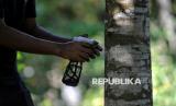 Petani gaharu melakukan penyuntikan menggunakan cairan inokulan ke batang pohon gaharu di Desa Tanjung Belit, Kecamatan Kampar Kiri Hulu, Kabupaten Kampar, Riau, Rabu (11/12/2024). Pohon Gaharu (Aquilaria malaccensis) merupakan salah satu tanaman yang dimanfaatkan warga setempat untuk dibudidayakan karena memiliki nilai ekonomi yang tinggi. Kayu gaharu tersebut dapat dijumpai di wilayah hutan hujan tropis seperti di Indonesia, Bangladesh, Bhutan, India, Iran, Laos, Malaysia, Myanmar, Filipina, Singapura, dan Thailand. Gaharu tersebut biasanya digunakan untuk bahan dasar parfum, obat batuk, anti jamur dan insektisida dengan harga jual sekitar Rp4 juta per kilogram. Budidaya pohon gaharu tersebut merupakan bagian dari program YAPEKA dalam konsorsium Konservasi Rimbang Baling bersama Masyarakat yang Berdaulat (Kerabat) untuk meningkatkan mata pencaharian alternatif bagi masyarakat sekitar selain tanaman komiditi karet. (FOTO : Republika/Thoudy Badai)