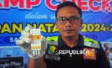 Anggota tim Kedokteran dan Kesehatan (Dokkes) dari Polres Kudus menunjukkan hasil tes urine saat pemeriksaan kesehatan sopir di Terminal Jati, Kudus, Jawa Tengah, Rabu (11/12/2024). Pemeriksaan kesehatan sopir bus Antar Kota Antar Provinsi (AKAP) yang meliputi pemeriksaan tekanan darah, kandungan alkohol, dan urine tersebut guna menghindari risiko terjadinya kecelakaan akibat kelalaian pengemudi yang tidak sehat saat melakukan perjalanan selama libur Natal dan Tahun Baru 2025 .  (FOTO : ANTARA FOTO/Yusuf Nugroho)