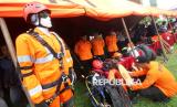 Petugas Basarnas menyiapkan peralatan saat apel kesiapsiagaan penanggulangan bencana hidrometeorologi di Kota Kediri, Jawa Timur, Kamis (12/12/2024). Apel gabungan Basarnar, BPBD, Polisi, TNI, PMI, BMKG, dan Tagana tersebut sebagai upaya kesiapan menghadapi potensi bencana yang dipengaruhi oleh faktor cuaca seperti banjir, angin puting beliung, dan tanah longsor. (FOTO : ANTARA FOTO/Prasetia Fauzani)