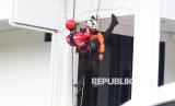 REPUBLIKA.CO.ID, KEDIRI -- Petugas Vertical Rescue Indonesia membawa korban dari ketinggian menggunakan tali saat simulasi vertical rescue di Kota Kediri, Jawa Timur, Kamis (12/12/2024).