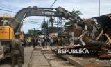 REPUBLIKA.CO.ID, BOGOR -- Sejumlah warga dan petugas menyaksikan pembongkaran kios pedagang di jalan Merdeka, Kota Bogor, Jawa Barat, Kamis (12/12/2024).