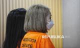 Salah satu perempuan WNA asal Vietnam yang diduga bekerja sebagai pekerja seks komersial dihadirkan saat konferensi pers di Lobby Direktorat Jenderal Imigrasi, Jakarta, Jumat (13/12/2024). Direktorat Jenderal Imigrasi mengamankan 12 WNA asal Vietnam karena melakukan pelanggaran dan menyalahgunakan dokumen keimigrasian untuk bekerja sebagai Pekerja Seks Komersial pada tempat hiburan di daerah Muara Karang, Jakarta Utara. (FOTO : Republika/Prayogi)