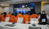 Sejumlah perempuan WNA asal Vietnam yang diduga bekerja sebagai pekerja seks komersial dihadirkan saat konferensi pers di Lobby Direktorat Jenderal Imigrasi, Jakarta, Jumat (13/12/2024). Direktorat Jenderal Imigrasi mengamankan 12 WNA asal Vietnam karena melakukan pelanggaran dan menyalahgunakan dokumen keimigrasian untuk bekerja sebagai Pekerja Seks Komersial pada tempat hiburan di daerah Muara Karang, Jakarta Utara. (FOTO : Republika/Prayogi)