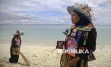 REPUBLIKA.CO.ID, MALUKU UTARA -- Warga mengenakan busana hasil daur ulang sampah plastik saat membersihkan pantai Tanjung Waka, Kepulauan Sula, Maluku Utara, Sabtu (14/12/2024).