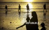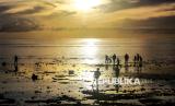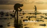 REPUBLIKA.CO.ID, MALUKU UTARA -- Wisatawan mencari kerang laut saat matahari terbit di objek wisata Tanjung Waka, Kepulauan Sula, Maluku Utara, Ahad (15/12/2024).