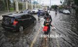 REPUBLIKA.CO.ID, JAKARTA -- Pengendara kendaraan bermotor melintasi banjir rob di Kawasan Pluit Karang Ayu Barat, Jakarta, Senin (16/12/2024).
