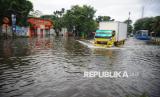 Banjir luapan air laut atau rob tersebut menggenangi salah satu akses jalan untuk memasuki kawasan pelabuhan Muara Angke.