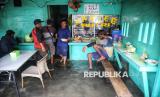 Pekerja membeli makan siang di wartr saat banjir rob di Kawasan Pluit Karang Ayu Barat, Jakarta, Senin (16/12/2024). Banjir luapan air laut atau rob tersebut menggenangi salah satu akses jalan untuk memasuki kawasan pelabuhan Muara Angke. Banjir rob dikawasan tersebut mencapai ketinggian sekitar 10 hingga 60 sentimeter (cm) yang berakibat aktivitas warga di sekitar menjadi terhambat. Menurut informasi sudah empat hari banjir rob merendam beberapa tempat di wilayah Jakarta Utara. Sebelumnya Badan Meteorologi Klimatologi dan Geofisika telah mengeluarkan peringatan dini banjir rob pada pada tanggal 11 Desember - 20 Desember 2024. (FOTO : Republika/Prayogi)