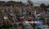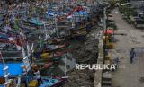 REPUBLIKA.CO.ID, PANDEGLANG -- Sejumlah kapal nelayan yang tidak melaut bersandar di Sungai Cipunten Agung, Kabupaten Pandeglang, Banten, Senin (16/12/2024).