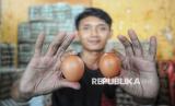 Pedagang menunjukkan telur di pasar Rawamangun, Jakarta, Selasa (17/12/2024). Pedagang mengakui harga telur ayam negeri mengalami kenaikan sejak sepekan terakhir. Saat ini  harga telur ditempat tersebut mencapai Rp 31.000 per kilogram. Padahal sepekan sebelumnya masih diharga Rp. 26.000 per kilogram. Menurut pedagang kemungkinan harga telur akan kembali normal setelah tahun baru. Banyak konsumen yang mengeluh akan kenaikan harga telur tersebut terutama dari kalangan ibu rumah tangga. (FOTO : Republika/Prayogi)